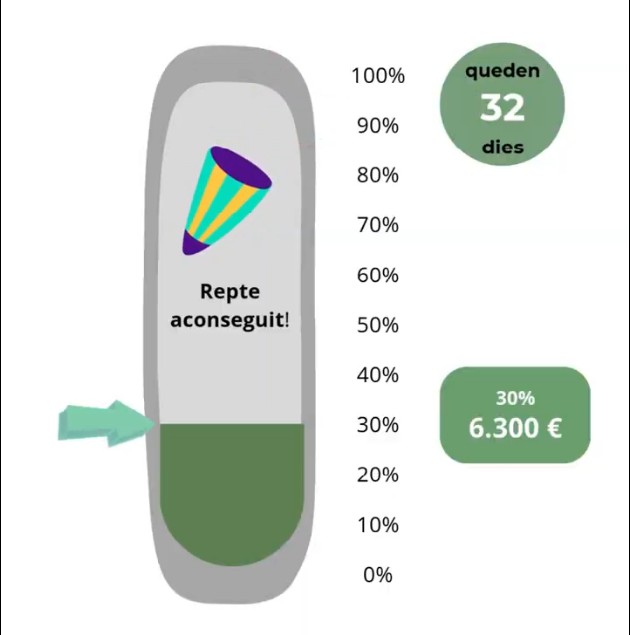 🎉 Gràcies a vosaltres, ahir vam assolir el nostre primer objectiu, que prevèiem aconseguir demà (8 de març), és a dir: arribar als 6.300 €, el 30% de la recaptació)!